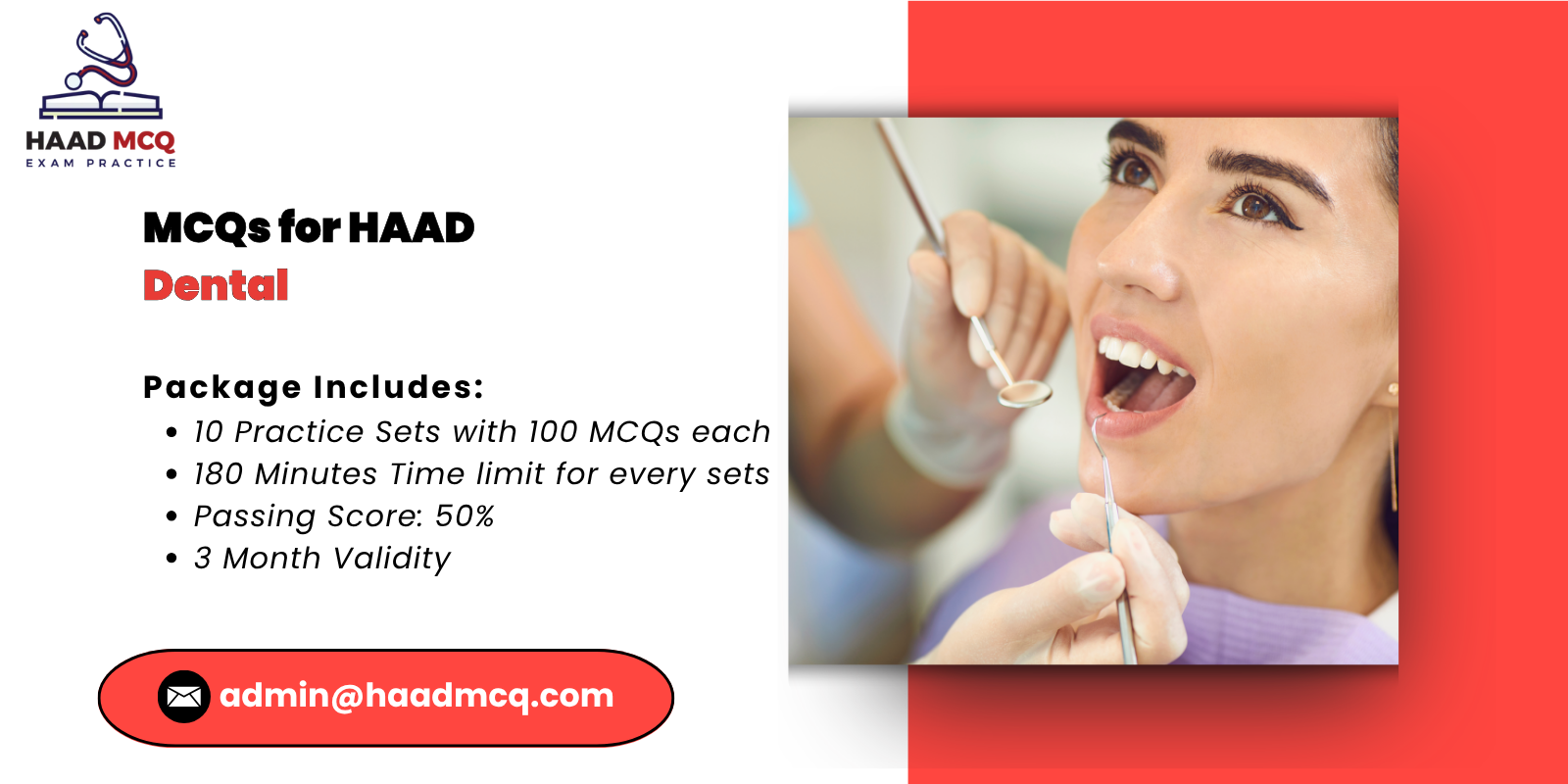 Multiple Choice Questions (MCQs) for Health Authority of Abu Dhabi (HAAD) Dental Pearson Vue Exam Preparation